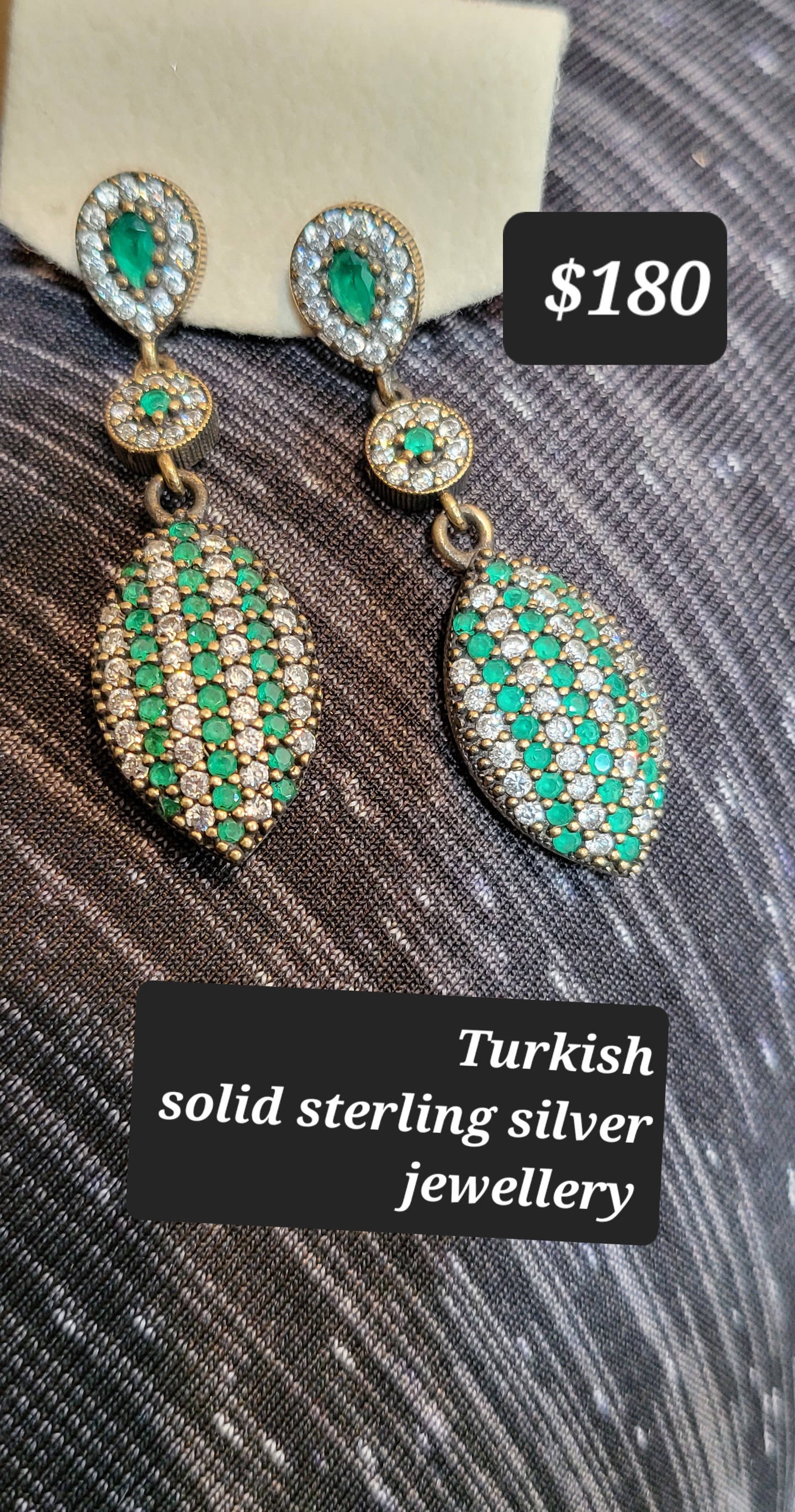This is the only pair like this. Set with emeralds and white topazes.